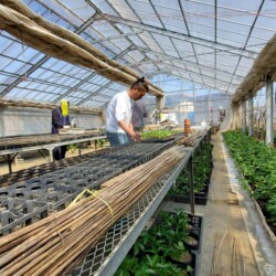 生産者さん用の大苗は、3月に入り支柱を立て始めました。(昨年よりも成長が早いです)